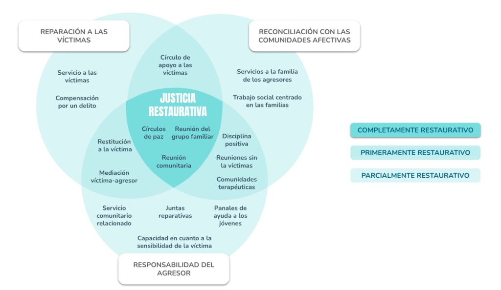 | Enfoque | Predominantemente en el acuerdo entre las partes. | En la reparación del daño, la reintegración y la construcción de relaciones. |