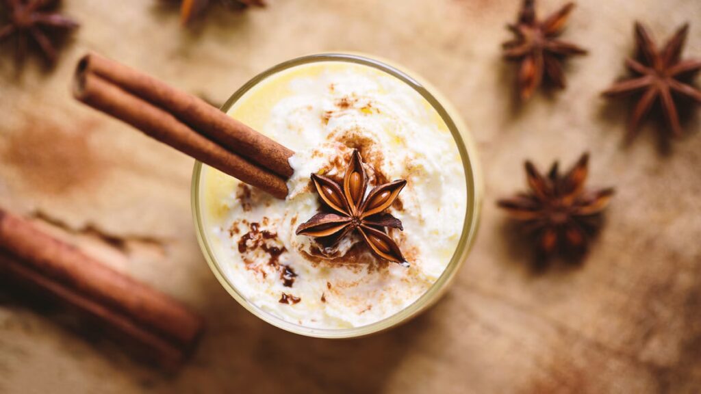El anís estrellado es un componente estrella en bebidas especiadas, especialmente las calientes. Es un ingrediente clásico en el Glühwein o vino caliente alemán, en ponches sin alcohol, chocolate caliente o el tradicional eggnog navideño. Durante el resto del año, puede disfrutarse en un reconfortante té chai latte o en la popular leche dorada.