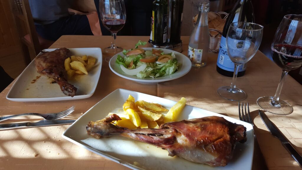 Cada ración de cabrito asado se estima en aproximadamente 450 gramos, una porción generosa que garantiza la satisfacción de los comensales. El precio de un cabrito entero asado ronda los 180,00 €, lo que se traduce en un costo aproximado de 10,00 € por ración, una inversión más que justificada por la calidad y la experiencia culinaria que ofrece. Además, este manjar suele ser acompañado tradicionalmente con patatas asadas tipo panadera, complementando a la perfección el sabor y la jugosidad de la carne.