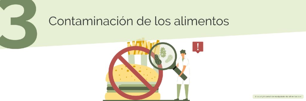 | Química | Sustancias químicas nocivas en alimentos. | Residuos de limpieza, pesticidas, metales pesados. | Lavado de productos, uso de utensilios aptos, almacenamiento separado de químicos. |