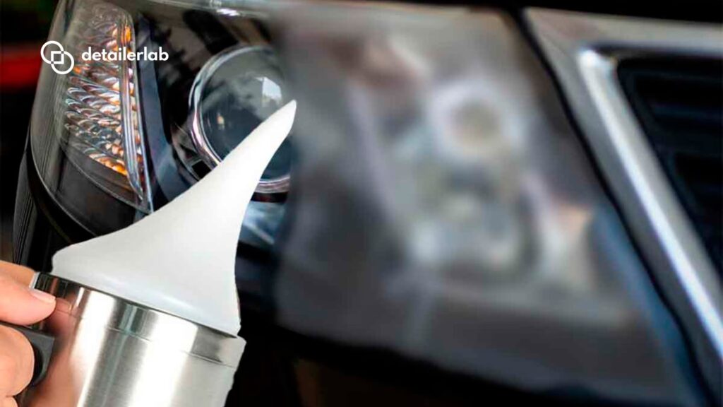 Este paso es crucial para la durabilidad de la restauración. Sin una capa protectora UV, los faros volverán a oxidarse rápidamente.
