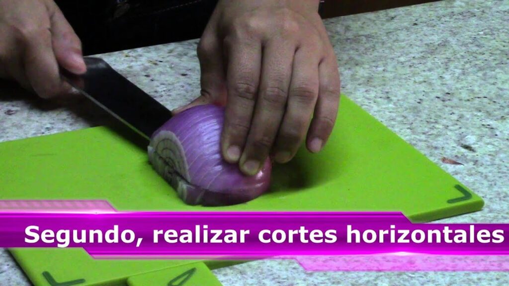 - Cortes Horizontales (Primer Cincelado): Coloca la media cebolla con el lado cortado hacia abajo sobre la tabla. Con un cuchillo de chef bien afilado, realiza cortes horizontales paralelos a la tabla, sin llegar hasta el extremo de la raíz. El número de cortes dependerá del tamaño de la cebolla y del grosor deseado para la brunoise. Para una brunoise fina, los cortes deben ser muy cercanos entre sí. Imagina que estás creando "láminas" dentro de la cebolla.