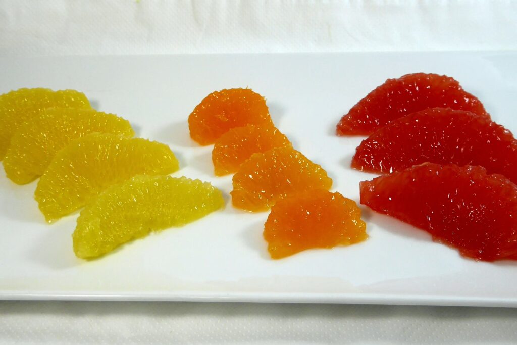 | Gajo Natural de Fruta | División natural de la pulpa de ciertos frutos cítricos. | Mandarina, Naranja, Limón, Pomelo | Fácilmente separable, jugoso, parte del endocarpio. |