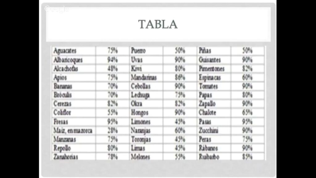 Aunque los valores exactos pueden variar según la variedad y el proceso, esta tabla ofrece una idea general del rendimiento típico de algunos alimentos: