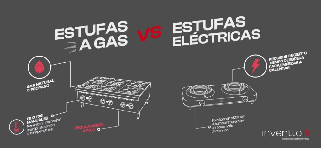 - ¿Cuál es la diferencia principal entre una estufa de gas y una eléctrica para cocinar?