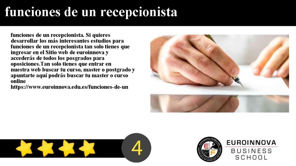 - Orden y Presentación: Es responsabilidad del recepcionista asegurarse de que el área de recepción esté siempre ordenada, limpia y presentable. Esto incluye tener toda la papelería y el material necesario (como bolígrafos, formularios y folletos) a mano y organizados.