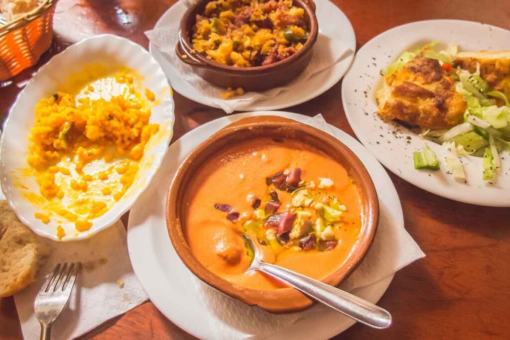 Considerado por muchos como el plato más emblemático de toda la región, el gazpacho es una sopa fría que ha trascendido fronteras, convirtiéndose en uno de los embajadores culinarios de España. Su origen se remonta a la Edad Media, cuando los campesinos y jornaleros lo preparaban con los ingredientes más humildes: pan viejo remojado, ajo y aceite.