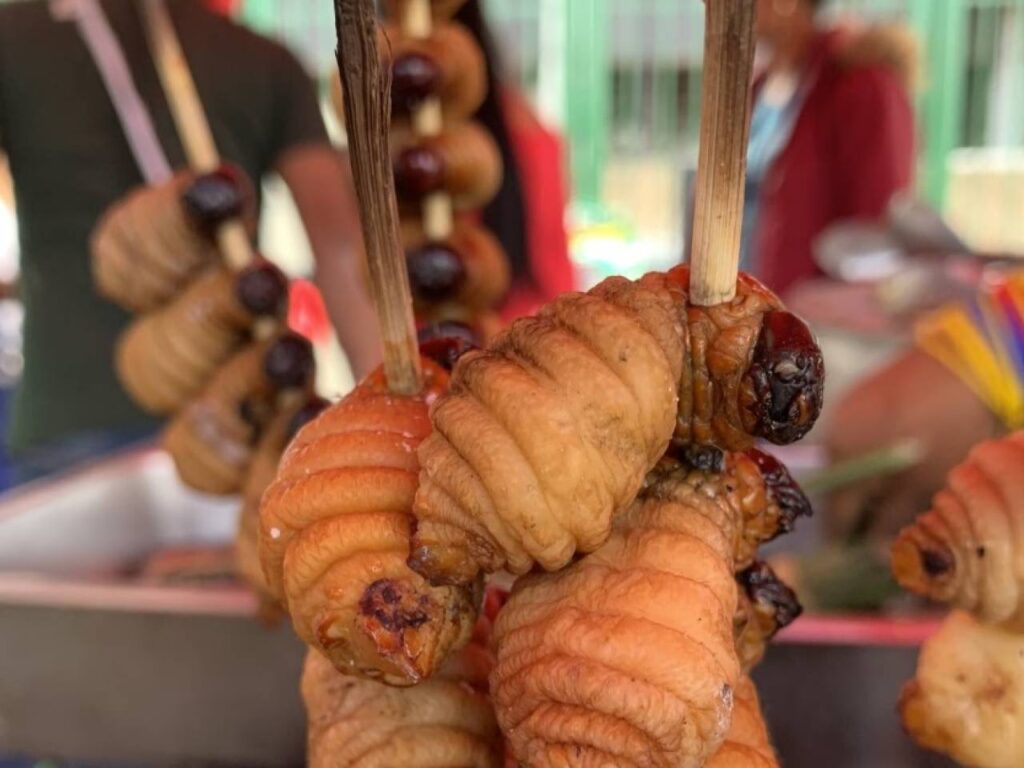 La dieta Huaorani es predominantemente proteica, basada en la caza de mamíferos como monos, pecaríes y tapires, y una gran variedad de aves y reptiles. La recolección de larvas de palma (chontacuros), frutas silvestres y palmito complementa su alimentación. La chicha, aunque también presente, es menos fundamental que en otras culturas, dando paso a una mayor dependencia de los productos de la caza. Cada comida es un reflejo de su habilidad para aprovechar los recursos que la selva les ofrece de manera sostenible.