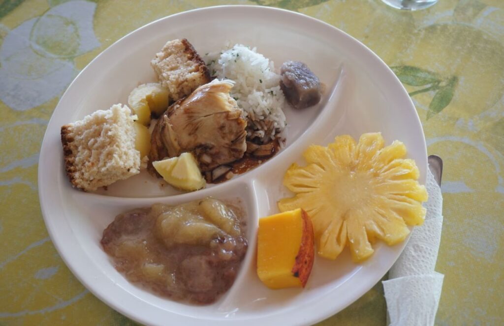 Aunque la cocina tradicional se centra en pescado, carne y productos lácteos (coco), la abundancia de frutas tropicales, vegetales como el taro, y platos a base de arroz, permiten encontrar opciones vegetarianas o adaptadas. Siempre es recomendable comunicar tus necesidades dietéticas al personal del restaurante para que puedan ofrecerte las mejores alternativas.