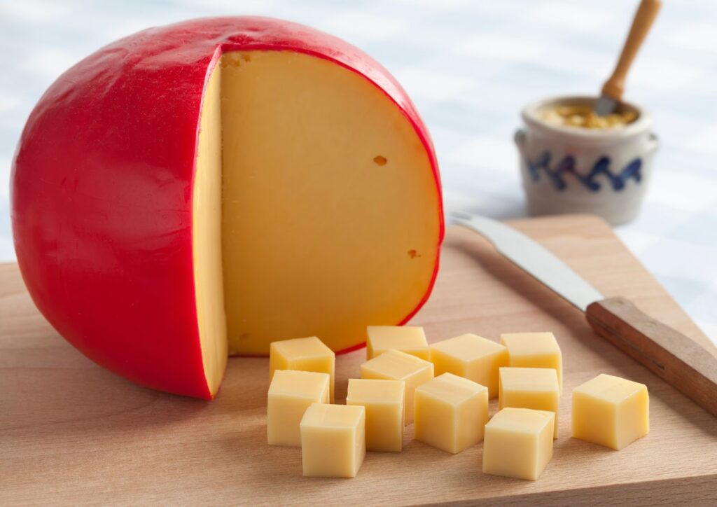 - Edam (Holanda): Característico por su color amarillo y forma esférica, es un queso de leche de vaca, ni duro ni blando, con un sabor ligeramente salado.