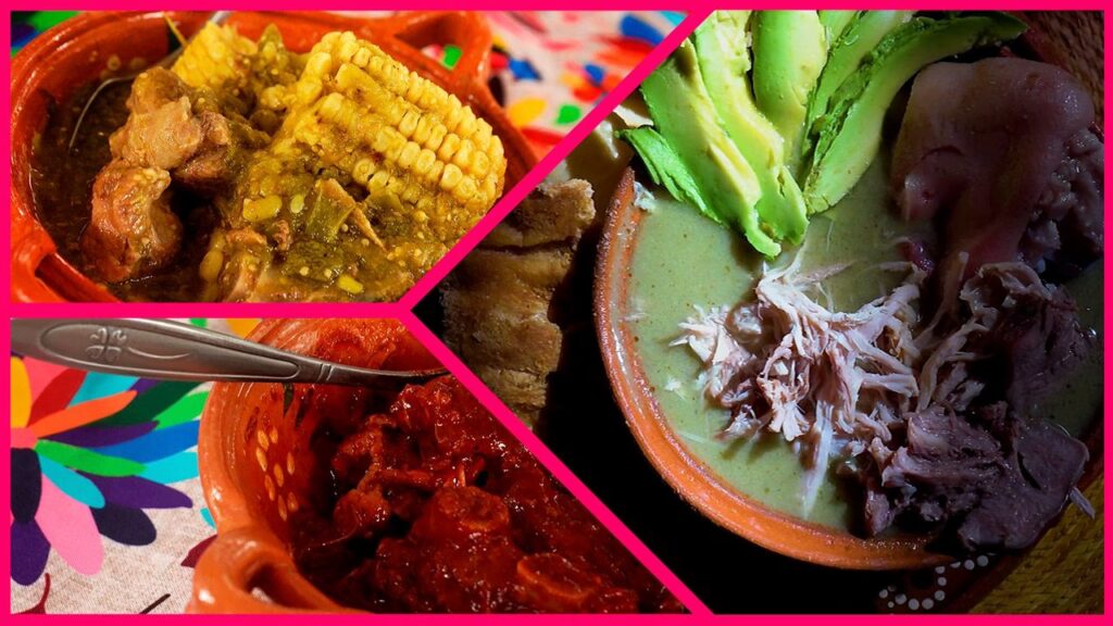 PozoleMaíz cacahuazintle, carne de cerdo, caldo (blanco, verde, rojo)Plato completo, personalizable con guarniciones, reconfortanteCenas de jueves, fines de semana, celebraciones