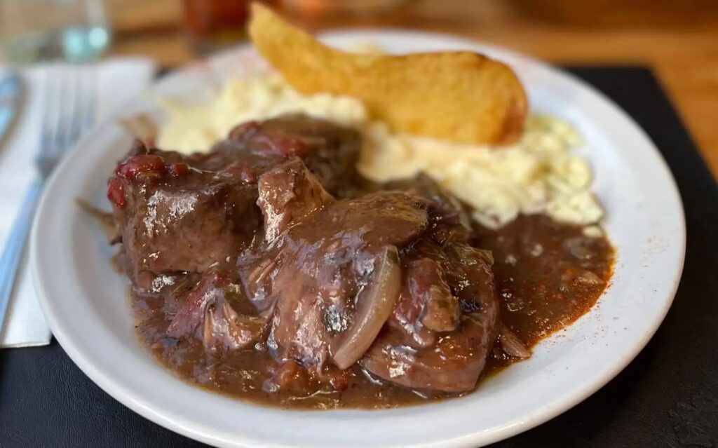 El goulash, un guiso de carne de origen húngaro, es otro plato que ha encontrado su hogar en Bariloche. Preparado con cortes de carne tiernos y una salsa rica y especiada, a menudo servido con spätzle (pequeños fideos o bolitas de masa), es un plato sustancioso y reconfortante. Su calor y su sabor profundo lo convierten en la opción perfecta para recargar energías después de un día de exploración en la montaña.