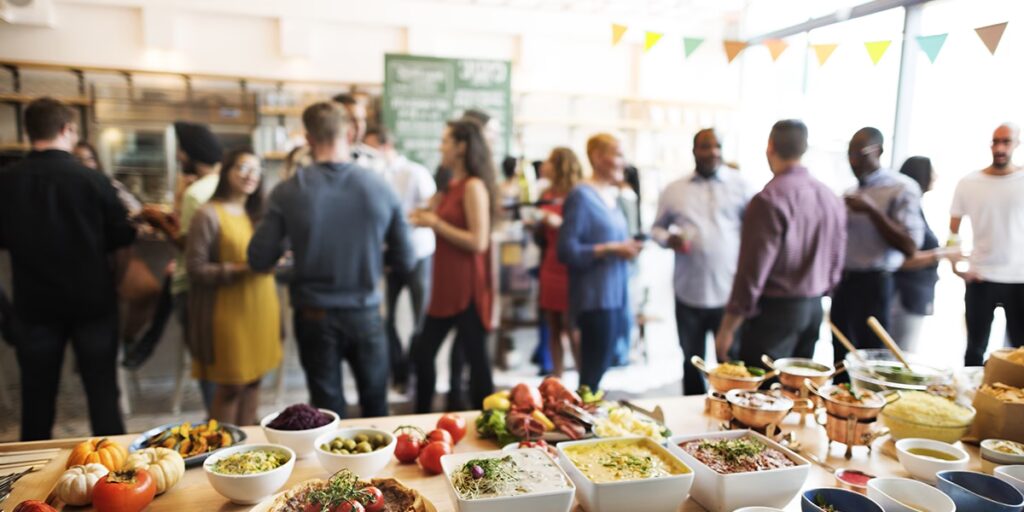 - Incluir Branding en la Presentación: Servilletas, vasos y empaques con el logo del negocio. Estaciones de comida decoradas con colores y elementos de la marca.