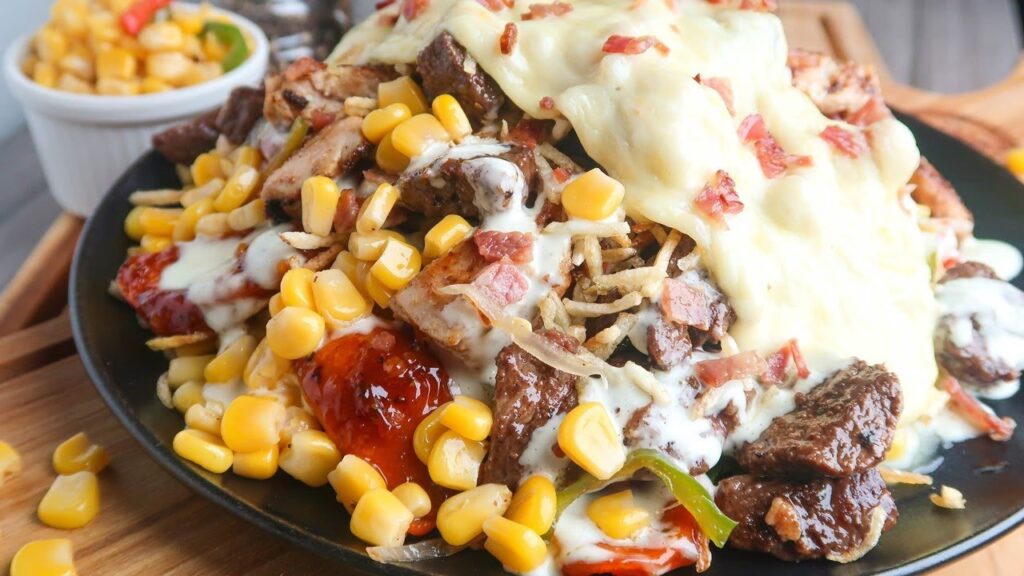 - Papas: Crujientes y esenciales para la sensación de comida rápida. Se utilizan tanto pequeñas piezas de papa frita (conocidas como "papas ripio", similares a las que se usan como topping en los perros calientes, que añaden un toque crocante y salado) como papas a la francesa tradicionales, que brindan sustento y una textura más suave.