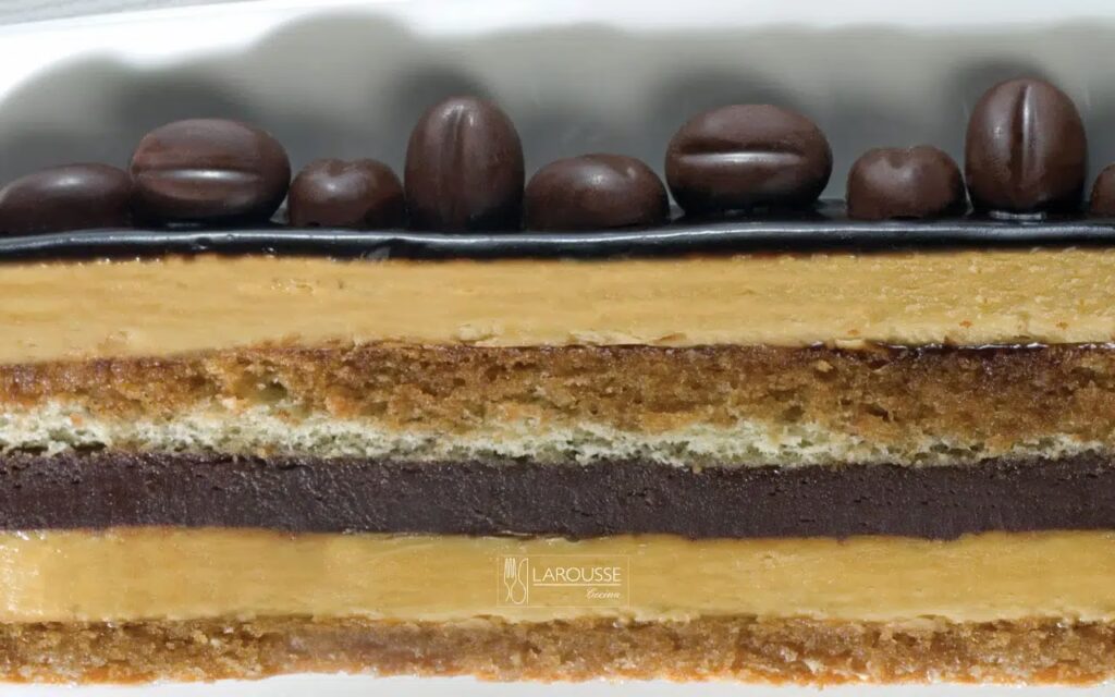 La Tarta Ópera es un pastel clásico de la repostería francesa, caracterizado por sus múltiples capas de bizcocho Gioconda empapado en café, crema de mantequilla de café y ganache de chocolate, todo ello cubierto con un brillante glaseado de chocolate. Es conocida por su equilibrio perfecto entre los sabores de café y chocolate y su textura suave y cremosa.