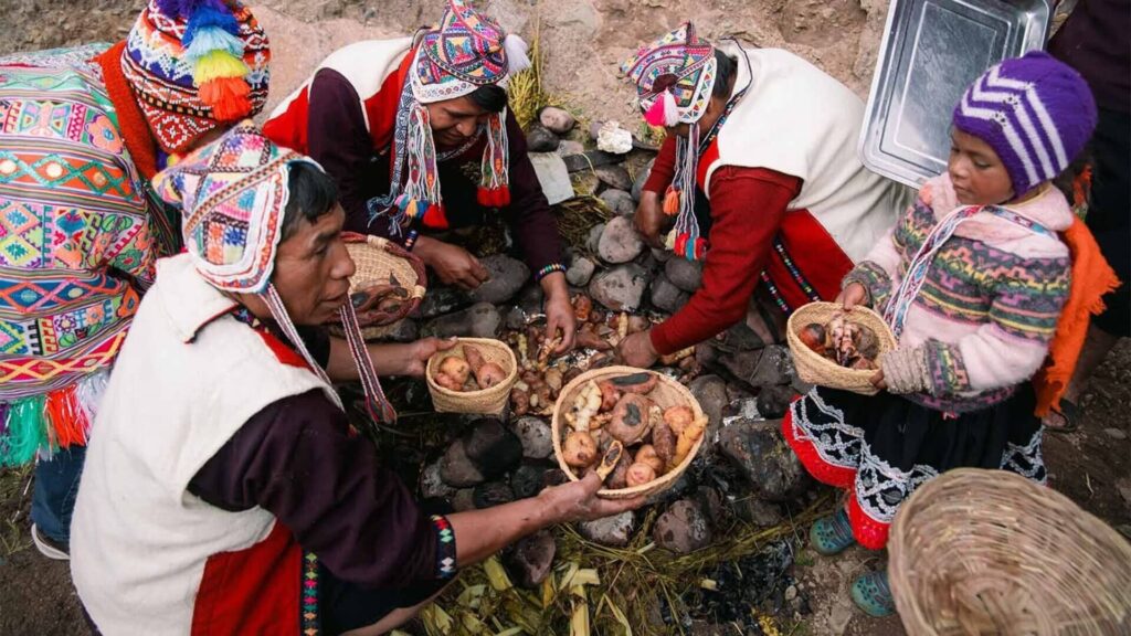Las técnicas de cocina incluían el hervido, el asado (probablemente en hornos de tierra o sobre fuego), y la fermentación (para la chicha). La deshidratación de alimentos, como el chuño (papa deshidratada) y el charqui (carne seca), era una técnica fundamental para la conservación y el almacenamiento a largo plazo.