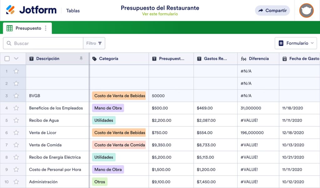 - Encabezados Claros: Utiliza nombres de columna descriptivos y concisos (ej. "Fecha", "Producto", "Cantidad", "Precio Unitario", "Total").
