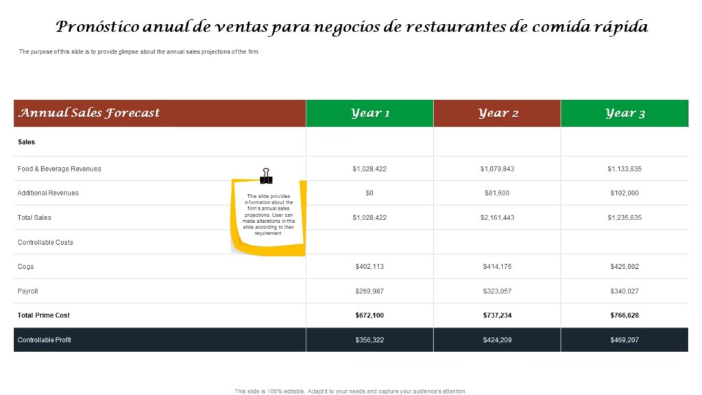 Ejemplo: Si un restaurante de hamburguesas promedia 250 clientes al día y cada uno gasta $14, el pronóstico diario sería: 250 x $14 = $3,500.