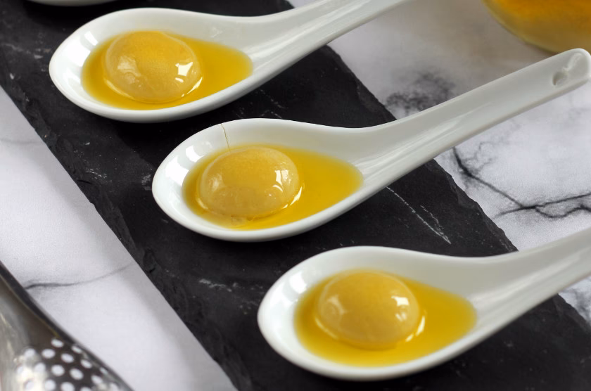 • Crear Contrastes de Textura: La combinación de una membrana delicada y un interior líquido ofrece un contraste textural sorprendente que enriquece cualquier bocado. Piénsese en el contraste con la cremosidad de un postre o la firmeza de un plato principal.