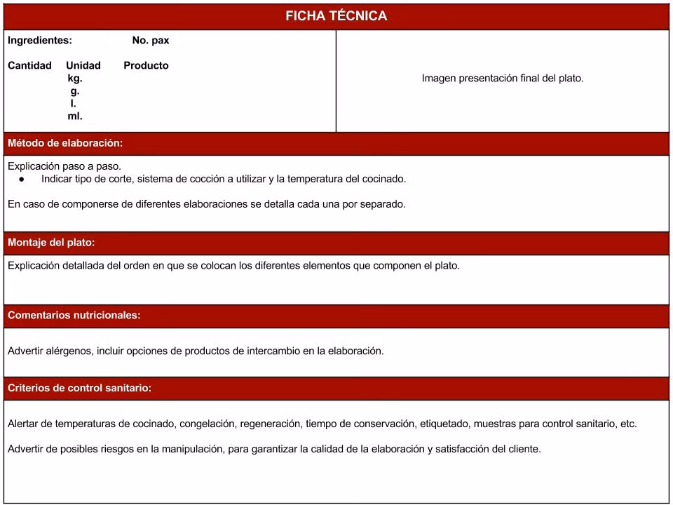 - Elementos Cruciales de una Ficha Técnica de Plato