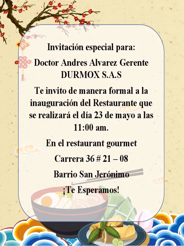 - El Anuncio del Evento: Ve directo al grano. "Nos complace invitarte a...", "Te esperamos en nuestra...", "Prepárate para una experiencia culinaria única en..."